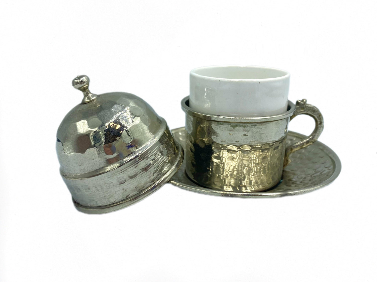 Lavina | Copper Turkish Coffee Cup with Lid Silver Color