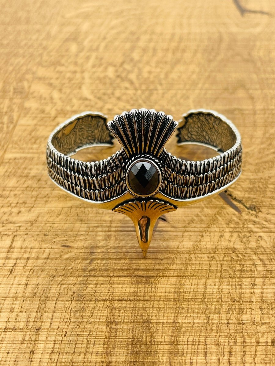이 멋진 남성용 독수리 조절 가능한 은 팔찌로 스타일을 높이세요. 정교하게 수작업으로 제작된 이 커프 팔찌는 복잡한 동물 디자인과 눈에 띄는 검은 지르콘 스톤이 특징으로, 주목할 만한 보석입니다.