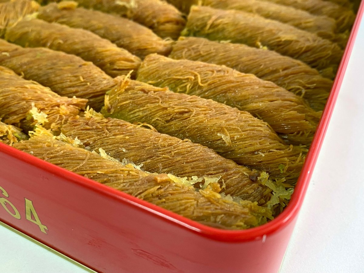 버마 카다이프는 잘게 썬 필로 반죽으로 만들어지며, 풍부한 양의 다진 터키 피스타치오를 여러 겹으로 감싸고 오븐에서 구운 후 달콤한 시럽으로 마무리됩니다.