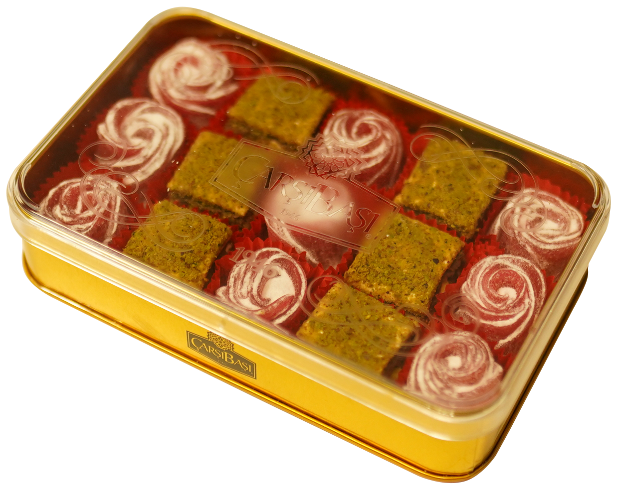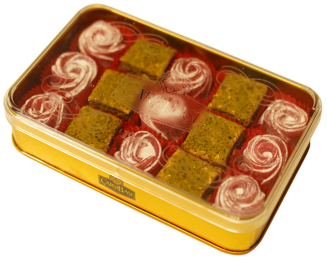 Carsibasi 프리미엄 모듬 딜라이트로 터키 전통의 변치 않는 선물을 전하세요. 이 우아한 310g 금색 장식 틴 박스에는 15개의 정교한 조각이 들어 있어 고급 선물 가게, 부티크, 전문 소매점에 완벽하고 수요가 높은 B2B 아이템입니다.
