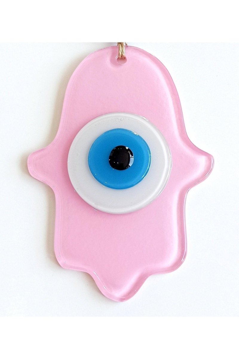 나자 비드 핑크 손 모양 유리 벽 장식: 보호와 장난기 가득한 기쁨의 매력적인 조화