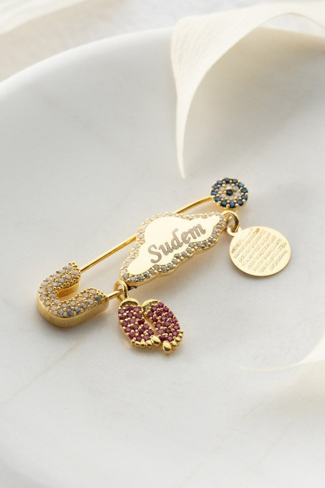 실버 개인화된 클라우드 모델 핑크 발 이슬람 동기 아야탈 쿠르시 아기 핀으로 특별한 날을 축하하세요. 이 매력적인 핀은 925 스털링 실버로 제작되었으며, 핑크 발이 있는 사려 깊은 이슬람 모티프가 특징으로, 어떤 아기 선물에도 개인적인 터치를 더합니다.
